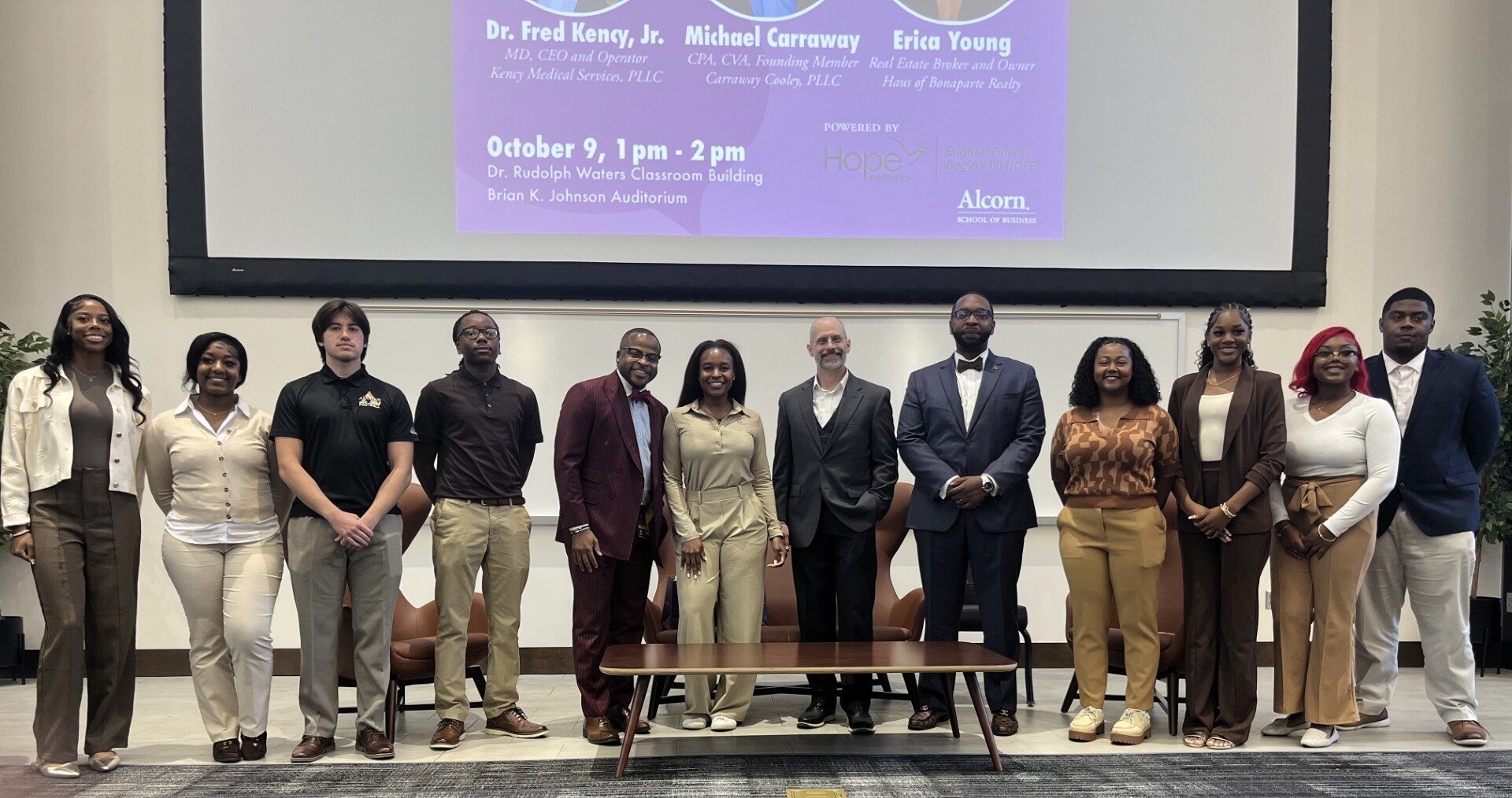 The Alcorn State University (ASU) School of Business hosted “Conversations with the Dean” on Wednesday, October 9th, from 1:00 pm to 2:00 pm in the Dr. Rudolph Waters Classroom Building at the Brian K. Johnson Auditorium. Students checked in and filled the seats, eager to hear advice and insight from successful professionals.